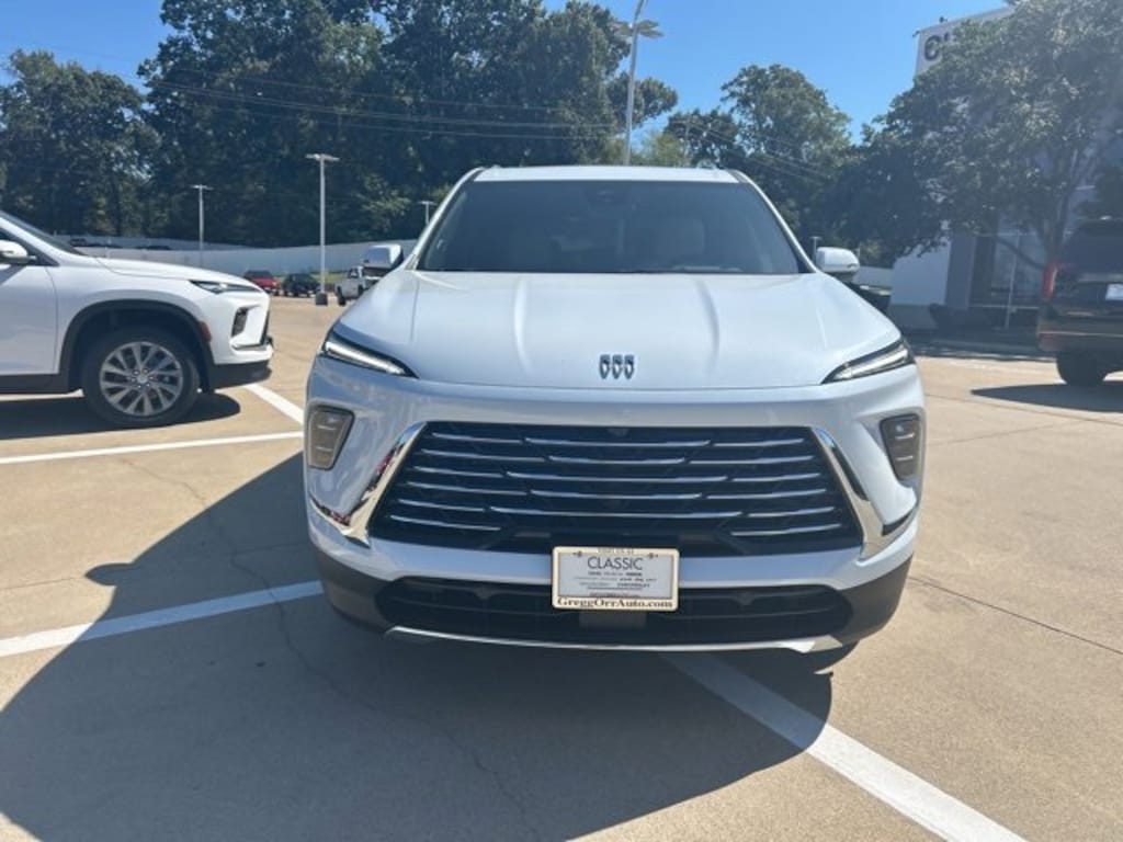 This 2026 Buick Enclave comes equipped with the following features Front Mounting License Plate Bracket Package, Power Package (110-Volt Power Outlet, 2nd Row 1-Touch Flat Folding Seat, 3rd Row 60/40 Power Split-Folding Bench, Head-Up Display, Heated Wiper Park, Inside Rearview Auto-Dimming Rear Camera Mirror, Memory Settings, and Universal Home Remote), Preferred Equipment Group 1SD, FWD, 12 Speakers, 3rd row seats: split-bench, 4-Wheel Disc Brakes, ABS brakes, Air Conditioning, Alloy wheels, AM/FM radio: SiriusXM with 360L, Apple CarPlay/Android Auto, Auto High-beam Headlights, Auto-dimming door mirrors, Auto-dimming Rear-View mirror, Automatic temperature control, Bose Premium 12-Speaker Audio System, Brake assist, Bumpers: body-color, Compass, Delay-off headlights, Driver 4-Way Power Lumbar Seat Adjuster, Driver 8-Way Power Seat Adjuster, Driver door bin, Driver vanity mirror, Dual front impact airbags, Dual front side impact airbags, Electronic Stability Control, Emergency communication system: OnStar and Buick connected services capable, Four wheel independent suspension, Front anti-roll bar, Front Bucket Seats, Front Center Armrest, Front dual zone A/C, Front Passenger 4-Way Power Lumbar Seat Adjuster, Front Passenger 6-Way Power Seat Adjuster, Front reading lights, Fully automatic headlights, Heated door mirrors, Heated Driver & Front Passenger Seats, Heated front seats, Heated steering wheel, Illuminated entry, Leather steering wheel, Leatherette Seat Trim, Low tire pressure warning, Navigation System, Occupant sensing airbag, Outside temperature display, Overhead airbag, Overhead console, Panic alarm, Passenger door bin, Passenger vanity mirror, Power door mirrors, Power driver seat, Power Liftgate, Power Panoramic Sunroof w/Sunshade, Power passenger seat, Power steering, Power windows, Premium audio system: Buick Infotainment System, Radio data system, Radio: Infotainment Center, Rear air conditioning, Rear anti-roll bar, Rear reading lights, Rear side impact airbag, Rear window defroster, Rear window wiper, Remote keyless entry, Security system, SiriusXM w/360L Trial Subscription, Speed control, Speed-sensing steering, Spoiler, Steering wheel mounted audio controls, Tachometer, Telescoping steering wheel, Tilt steering wheel, Traction control, Trip computer, Turn signal indicator mirrors, Variably intermittent wipers, Voltmeter, Wheels: 20 Alloy w/Medium Android Finish, Wireless Apple CarPlay, and Wireless Google Android Auto. FWD. 2026 Buick Enclave White Preferred FWD 8-Speed Automatic 2.5L DOHC