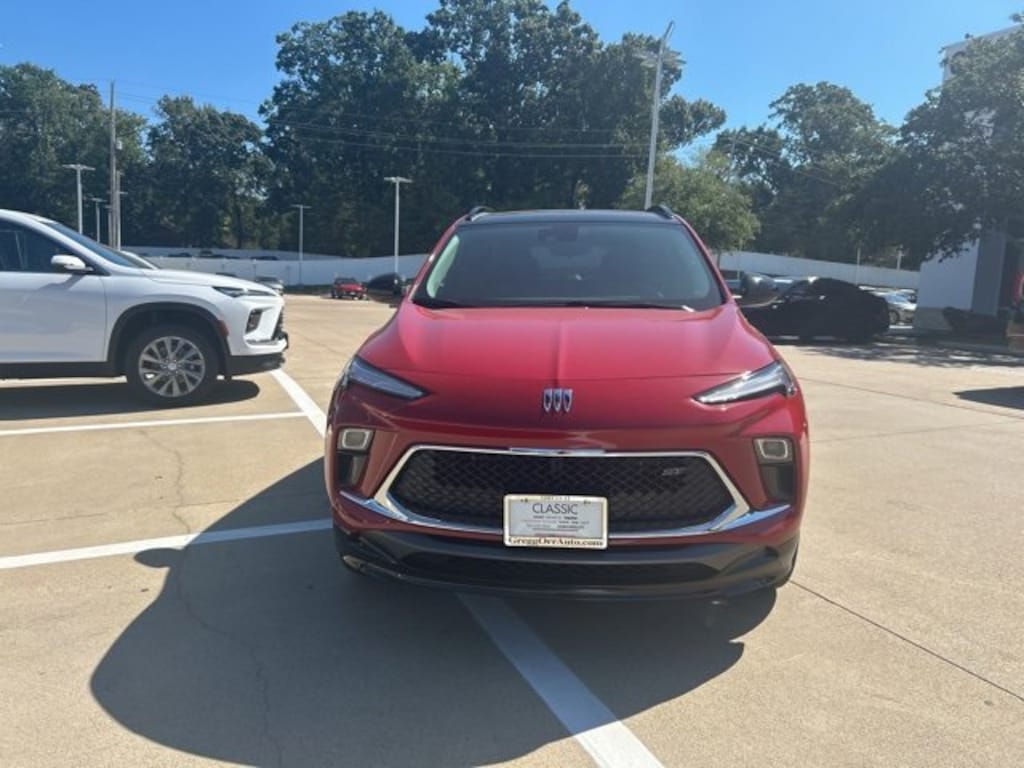 This 2026 Buick Encore GX comes equipped with the following features Black Roof Package (Black Exterior Mirror Caps, Black Roof Panel, and Black Roof Rails), Comfort Package (2-Way Power Driver Lumbar Control, 8-Way Power Driver Seat Adjuster, Flat-Folding Front Passenger Seatback, Heated Driver & Front Passenger Seats, Heated Steering Wheel, and Rear Center Armrest), Preferred Equipment Group 1SD, 4-Way Manual Passenger Seat Adjuster, 4-Wheel Disc Brakes, 5.45 Final Drive Axle Ratio, 6 Speakers, 6-Way Manual Driver Seat Adjuster, ABS brakes, Air Conditioning, Alloy wheels, AM/FM radio: SiriusXM, Auto High-beam Headlights, Automatic temperature control, Brake assist, Bumpers: body-color, Compass, Delay-off headlights, Driver door bin, Driver vanity mirror, Dual front impact airbags, Dual front side impact airbags, Electronic Stability Control, Emergency communication system: OnStar and Buick connected services capable, Enhanced Performance 6-Speaker System, Front anti-roll bar, Front Bucket Seats, Front Center Armrest, Front License Plate Bracket, Front reading lights, Front wheel independent suspension, Fully automatic headlights, Heated door mirrors, Illuminated entry, Knee airbag, Leatherette Seat Trim, Low tire pressure warning, Mechanical Jack w/Tools, Occupant sensing airbag, Outside temperature display, Overhead airbag, Overhead console, Panic alarm, Passenger door bin, Passenger vanity mirror, Power door mirrors, Power steering, Power windows, Radio data system, Radio: AM/FM Audio System, Rear reading lights, Rear side impact airbag, Rear window defroster, Rear window wiper, Remote keyless entry, Ride & Handling Suspension, Security system, SiriusXM Trial Subscription, Speed control, Speed-sensing steering, Split folding rear seat, Spoiler, Sport steering wheel, Steering wheel mounted audio controls, Tachometer, Telescoping steering wheel, Tilt steering wheel, Traction control, Trip computer, Variably intermittent wipers, Wheels: 18 Gloss Black Aluminum, and Wireless Apple CarPlay/Wireless Android Auto. 2026 Buick Encore GX Brilliant Red Sport Touring FWD CVT ECOTEC 1.3L Turbo