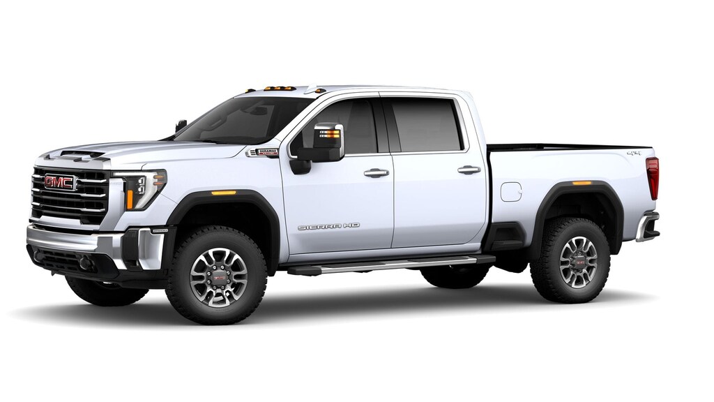 This 2026 GMC Sierra 2500HD comes equipped with the following features Gooseneck/5th Wheel Prep Package (Spray-on Pickup Bedliner with GMC Logo), Preferred Equipment Group 4SA (10-Way Power Driver Seat Adjuster with Lumbar, 10-Way Power Passenger Seat Adjuster with Lumbar, 120-Volt Bed Mounted Power Outlet, 120-Volt Instrument Panel Power Outlet, 2 Charge-Only Rear USB Ports, 2 Charge/Data USB Ports, 2-Speed Active Transfer Case, 6-Speaker Audio System Feature, Chrome Surround Grille with Chrome Insert Bars, Deep-Tinted Glass, Driver Memory, Electric Rear-Window Defogger, Front 40/20/40 Split-Bench Seats, Front Rain-Sensing Wipers, Heated Driver and Front Outboard Passenger Seats, Keyless Open and Start, LED Cargo Area Lighting, Manual Tilt-Wheel/Telescoping Steering Column, OnStar Services Capable, Power Front Passenger Windows with Express Up/Down, Push Button Start, Rear Wheelhouse Liners, Remote Vehicle Starter System, SiriusXM with 360L Trial Subscription, Steering Wheel Audio Controls, Unauthorized Entry Theft-Deterrent System, and Wireless Phone Projection), SLT Convenience Package (2 Charge/Data USB Ports Inside Center Console, Bose Premium 7-Speaker Sound System, Floor-Mounted Center Console, Front Bucket Seats, LED Smoked Amber Roof Marker Lamps, Ventilated Driver and Front Passenger Seats, and Wireless Charging), Suspension Package, 10-Speed Automatic, 4WD, Dark Walnut/Slate Leather, 18 Machined Aluminum Wheels, 220-Amp Alternator, 4-Wheel Disc Brakes, 6 Speakers, 6 Rectangular Chromed Tubular Assist Steps, ABS brakes, Air Conditioning, Alloy wheels, AM/FM radio: SiriusXM with 360L, Apple CarPlay/Android Auto, Auto High-beam Headlights, Auto-dimming door mirrors, Auto-dimming Rear-View mirror, Automatic Emergency Braking, Automatic temperature control, Brake assist, Buckle to Drive, Bumpers: chrome, Compass, Delay-off headlights, Driver door bin, Driver vanity mirror, Dual front impact airbags, Dual front side impact airbags, Electronic Stability Control, Emergency communication system: OnStar, Engine Block Heater, Exhaust Brake, Following Distance Indicator, Forward Collision Alert, Front anti-roll bar, Front Center Armrest w/Storage, Front dual zone A/C, Front fog lights, Front Pedestrian Braking, Front reading lights, Front wheel independent suspension, Fully automatic headlights, Heated door mirrors, Heated front seats, Heated steering wheel, Heavy-Duty 80 Amp Battery, Hitch Guidance with Hitch View, Illuminated entry, in-Vehicle Trailering System App, IntelliBeam Automatic High Beam on/Off, Lane Departure Warning System, Low tire pressure warning, Memory seat, Occupant sensing airbag, Outside temperature display, Overhead airbag, Overhead console, Panic alarm, Passenger door bin, Passenger vanity mirror, Perforated Leather-Appointed Front Outboard Seat Trim, Pickup Box, Power door mirrors, Power driver seat, Power passenger seat, Power steering, Power windows, Premium audio system: Premium GMC Infotainment System, Radio: AM/FM Stereo with Premium GMC Infotainment System, Rain sensing wipers, Rear reading lights, Rear seat center armrest, Rear step bumper, Rear window defroster, Remote keyless entry, Security system, Speed control, Speed-sensing steering, Split folding rear seat, Steering wheel mounted audio controls, Tachometer, Telescoping steering wheel, Tilt steering wheel, Traction control, Trip computer, Turn signal indicator mirrors, Variably intermittent wipers, Voltmeter, and Winter Grille Cover. 10-Speed Automatic, 4WD, Dark Walnut/Slate Leather. 2026 GMC Sierra 2500HD Glacier White SLT 4WD 10-Speed Automatic Duramax 6.6L V8 Turbodiesel