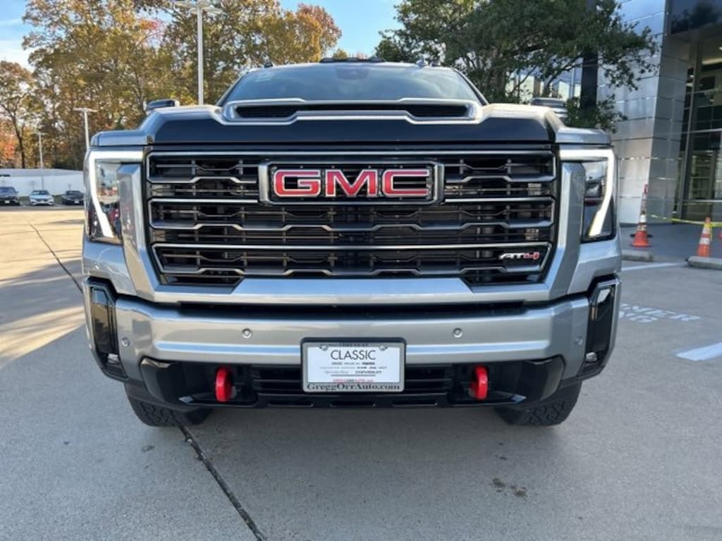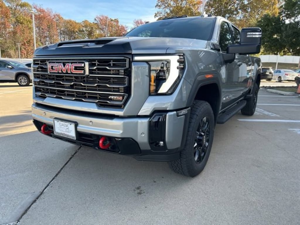 This 2026 GMC Sierra 2500HD comes equipped with the following features AT4 Preferred Package (LED Smoked Amber Roof Marker Lamps and Universal Home Remote), AT4 Premium Plus Package, Gooseneck/5th Wheel Prep Package, X31 Off-Road Package (Hill Descent Control and Off-Road Suspension), 10-Speed Automatic, 4WD, Jet Blk With Kalahari Acc Leather, 10-Way Power Driver Seat Adjuster with Lumbar, 10-Way Power Passenger Seat Adjuster with Lumbar, 120-Volt Bed Mounted Power Outlet, 120-Volt Instrument Panel Power Outlet, 2 Charge-Only Rear USB Ports, 2 Charge/Data USB Ports Inside Center Console, 2 USB Ports, 2-Speed Active Transfer Case, 3.73 Rear Axle Ratio, 4-Wheel Disc Brakes, 7 Speakers, ABS brakes, Air Conditioning, Alloy wheels, AM/FM radio: SiriusXM with 360L, Apple CarPlay/Android Auto, Auto High-beam Headlights, Auto-dimming door mirrors, Auto-dimming Rear-View mirror, Automatic Emergency Braking, Automatic temperature control, Bed View Camera with Two Trailer Camera Provisions, Bose Premium 7-Speaker Sound System, Brake assist, Buckle to Drive, Bumpers: body-color, Compass, Deep-Tinted Glass, Delay-off headlights, Driver door bin, Driver Memory, Driver vanity mirror, Dual front impact airbags, Dual front side impact airbags, Electric Rear-Window Defogger, Electronic Stability Control, Emergency communication system: OnStar, Floor-Mounted Center Console, Following Distance Indicator, Forward Collision Alert, Front anti-roll bar, Front Bucket Seats, Front Center Armrest, Front dual zone A/C, Front fog lights, Front Pedestrian Braking, Front Premium Floor Liners with Removable Carpet Insert, Front Rain-Sensing Wipers, Front reading lights, Front wheel independent suspension, Fully automatic headlights, Gloss Black Header Grille and Grille Insert Bars, HD Surround Vision, Heated 2nd Row Outboard Seats, Heated door mirrors, Heated Driver and Front Outboard Passenger Seats, Heated front seats, Heated rear seats, Heated steering wheel, Heavy-Duty 80 Amp Battery, Hitch Guidance with Hitch View, Illuminated entry, in-Vehicle Trailering System App, IntelliBeam Automatic High Beam on/Off, Keyless Open and Start, Lane Departure Warning System, LED Cargo Area Lighting, Low tire pressure warning, Manual Tilt-Wheel/Telescoping Steering Column, Memory seat, Occupant sensing airbag, Off-Road High Clearance Step, OnStar Services Capable, Outside temperature display, Overhead airbag, Overhead console, Panic alarm, Passenger door bin, Passenger vanity mirror, Perforated Leather-Appointed Front Seat Trim, Pickup Box, Power door mirrors, Power driver seat, Power Front Passenger Windows with Express Up/Down, Power passenger seat, Power steering, Power windows, Premium audio system: Premium GMC Infotainment System, Push Button Start, Radio: AM/FM Stereo with Premium GMC Infotainment System, Rain sensing wipers, Rear Cross Traffic Alert, Rear Premium Floor Liners with Removable Carpet Insert, Rear reading lights, Rear seat center armrest, Rear step bumper, Rear Wheelhouse Liners, Rear window defroster, Remote keyless entry, Remote Vehicle Starter System, Safety Alert Seat, Security system, SiriusXM with 360L Trial Subscription, Speed control, Speed-sensing steering, Split folding rear seat, Spray-on Pickup Bedliner with GMC Logo, Steering Wheel Audio Controls, Steering wheel mounted audio controls, Tachometer, Telescoping steering wheel, Tilt steering wheel, Traction control, Trailer Cam Provisions and Trailer Viewing Software, Trailer Side Blind Zone Alert, Trip computer, Turn signal indicator mirrors, Ultrasonic Front and Rear Park Assist, Unauthorized Entry Theft-Deterrent System, Variably intermittent wipers, Ventilated Driver and Front Passenger Seats, Ventilated front seats, Voltmeter, Wheels: 20 High Gloss Black 8 Spokes Aluminum, Wireless Charging, and Wireless Pho Price does not include tax, title, license and document fees. Not everyone qualifies for all rebates. Price includes: $500 - Buic