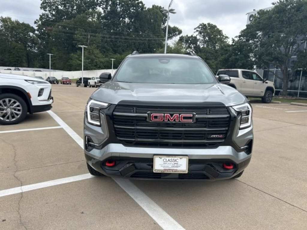 This 2026 GMC Terrain comes equipped with the following features License Plate Front Mounting Package, Preferred Equipment Group 4SB, Technology Package II (HD Surround Vision, Rear Camera Mirror, Rear Camera Mirror Washer, Rear Pedestrian Alert, and Traffic Sign Recognition), AWD, 2-Way Power Driver Lumbar Seat Adjuster, 3.47 Final Drive Axle Ratio, 4-Wheel Disc Brakes, 6 Speakers, 6-Speaker Audio System Feature, 8-Way Power Driver Seat Adjuster, ABS brakes, Air Conditioning, Alloy wheels, AM/FM radio: SiriusXM, Auto High-beam Headlights, Automatic temperature control, Brake assist, Bumpers: body-color, Cloth/Core Tec Seat Trim, Compass, Delay-off headlights, Driver & Front Passenger Heated Seats, Driver door bin, Driver vanity mirror, Dual front impact airbags, Dual front side impact airbags, Ebony Twilight Metallic Roof, Ebony Twilight Mirror Caps, Electronic Stability Control, Emergency communication system: OnStar and GMC connected services capable, Four wheel independent suspension, Front anti-roll bar, Front Bucket Seats, Front Center Armrest, Front dual zone A/C, Front fog lights, Front Passenger 4-Way Manual Seat Adjuster, Front reading lights, Fully automatic headlights, Garage door transmitter, Heated door mirrors, Heated front seats, Heated steering wheel, Illuminated entry, Low tire pressure warning, Navigation System, Occupant sensing airbag, Outside temperature display, Overhead airbag, Overhead console, Panic alarm, Panoramic Power Sunroof w/Sunshade, Passenger door bin, Passenger vanity mirror, Power door mirrors, Power driver seat, Power Liftgate, Power steering, Power windows, Radio data system, Radio: Premium GMC Infotainment System, Rain sensing wipers, Rear air conditioning, Rear anti-roll bar, Rear seat center armrest, Rear window defroster, Rear window wiper, Remote keyless entry, Security system, SiriusXM w/360L Trial Subscription, Speed control, Speed-sensing steering, Split folding rear seat, Spoiler, Sport steering wheel, Steering wheel mounted audio controls, Tachometer, Telescoping steering wheel, Tilt steering wheel, Traction control, Trip computer, Variably intermittent wipers, Wheels: 17 Dark Machined Aluminum, and Wireless Apple CarPlay/Wireless Android Auto. AWD. 2026 GMC Terrain Sterling Metallic AT4 AWD 8-Speed Automatic with Overdrive 1.5L DOHC