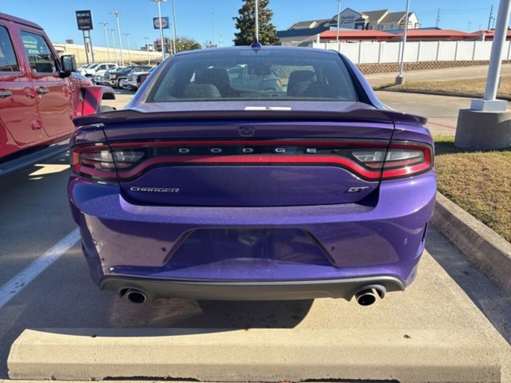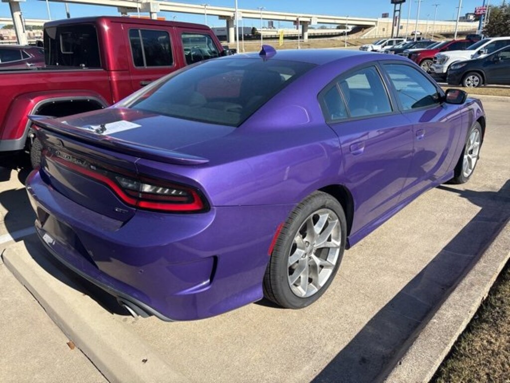 This 2023 Dodge Charger comes equipped with the following features Quick Order Package 2EH, Black w/Cloth Performance Seats or Cloth Performance Seats w/Heat or Daytona Logo Nappa/Alcantara Seat or Nappa/Alcantara Performance Seat, 1-Yr SiriusXM Guardian Trial, 2-Piece Shark Fin Antenna, 4-Wheel Disc Brakes, 4G LTE Wi-Fi Hot Spot, 6 Speakers, 8.4 Touchscreen Display, ABS brakes, Air Conditioning, Alloy wheels, AM/FM radio: SiriusXM, Anti-whiplash front head restraints, Apple CarPlay, Apple CarPlay/Android Auto, Auto-dimming Rear-View mirror, Automatic temperature control, Brake assist, Bumpers: body-color, Cloth Performance Seats, Compass, Delay-off headlights, Driver door bin, Driver vanity mirror, Dual front impact airbags, Dual front side impact airbags, Electronic Stability Control, Emergency communication system: SiriusXM Guardian, For Details, Visit DriveUconnect.com, Four wheel independent suspension, Front anti-roll bar, Front Bucket Seats, Front Center Armrest, Front dual zone A/C, Front License Plate Bracket, Front reading lights, Fully automatic headlights, Garage door transmitter: HomeLink, Google Android Auto, GPS Antenna Input, HD Radio, Heated door mirrors, Illuminated entry, Integrated Center Stack Radio, Integrated Voice Command w/Bluetooth, Knee airbag, Leather Shift Knob, Low tire pressure warning, Manufacturer's Statement of Origin, Media Hub (2 USB, AUX), Occupant sensing airbag, Outside temperature display, Overhead airbag, Overhead console, Panic alarm, ParkView Rear Back-Up Camera, Passenger door bin, Passenger vanity mirror, Power 2-Way Driver Lumbar Adjust, Power 8-Way Driver Seat, Power door mirrors, Power driver seat, Power steering, Power windows, Radio: Uconnect 4C w/8.4 Display, Rear anti-roll bar, Rear Armrest w/Cupholder Seat, Rear reading lights, Rear seat center armrest, Rear window defroster, Remote keyless entry, Speed control, Speed-Sensitive Wipers, Split folding rear seat, Spoiler, Steering wheel mounted audio controls, Tachometer, Telescoping steering wheel, Tilt steering wheel, Traction control, Trip computer, USB Host Flip, Variably intermittent wipers, and Wheels: 20 x 8 Satin Carbon PainteD. Black w/Cloth Performance Seats or Cloth Performance Seats w/Heat or Daytona Logo Nappa/Alcantara Seat or Nappa/Alcantara Performance Seat. CARFAX One-Owner. 2023 Dodge Charger GT RWD 3.6L V6 24V VVT19/30 City/Highway MPGPlum Crazy Pearlcoat