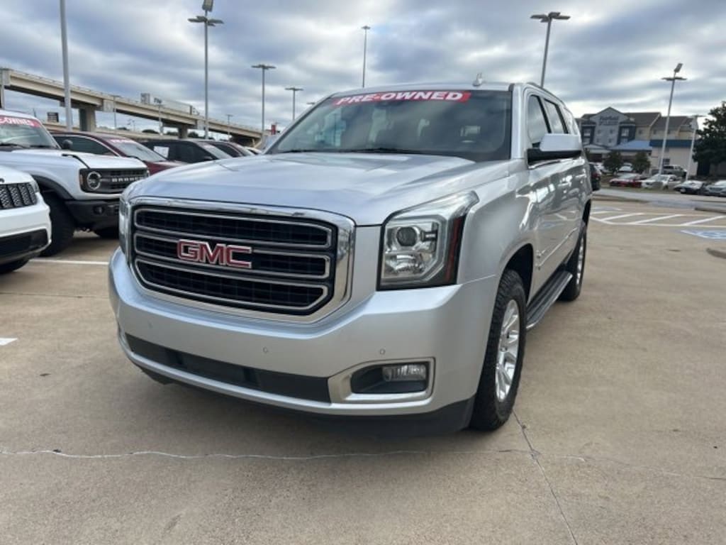 This 2020 GMC Yukon comes equipped with the following features Enhanced Driver Alert Package (Automatic Emergency Braking, Forward Collision Alert, IntelliBeam Automatic High Beam On/Off, and Lane Keep Assist w/Lane Departure Warning), Memory Package, Open Road Package (Power Tilt-Sliding Sunroof w/Express-Open/Close and Rear Seat Blu-Ray/DVD Entertainment System), Preferred Equipment Group 4SA (4-Wheel Antilock Disc Brakes, 5 Auxiliary 12-volt Power Outlets, Black Assist Steps w/Chrome Strip, Hands Free Power Programmable Rear Liftgate, Heated Leather-Wrapped Steering Wheel, Inside Rear-View Auto-Dimming Mirror, Lane Change Alert w/Side Blind Zone Alert, Passive Entry System, Power Release 2nd Row 60/40 Split-Folding Bench Seat, Power Tilt & Telescopic Steering Column, Power-Adjustable Pedals For Accelerator & Brake, Push Button Keyless Start, Rear Cross Traffic Alert, Remote Keyless Entry, and Universal Home Remote), Premium Smooth Ride Suspension Package, 3.08 Rear Axle Ratio, 3rd row seats: split-bench, 4-Wheel Disc Brakes, 9 Speakers, ABS brakes, Adjustable pedals, Air Conditioning, Alloy wheels, AM/FM radio: SiriusXM, Apple CarPlay/Android Auto, Auto High-beam Headlights, Auto-dimming door mirrors, Auto-dimming Rear-View mirror, Automatic temperature control, Bose Premium 9-Speaker System, Brake assist, Bumpers: body-color, CD Player, CD player, Compass, Delay-off headlights, Driver door bin, Driver vanity mirror, Dual front impact airbags, Dual front side impact airbags, Electronic Stability Control, Emergency communication system: OnStar and GMC connected services capable, Exterior Parking Camera Rear, Front anti-roll bar, Front Bucket Seats, Front Center Armrest, Front dual zone A/C, Front fog lights, Front reading lights, Front wheel independent suspension, Full-Feature Reclining Bucket Seats, Fully automatic headlights, Garage door transmitter, Heated & Ventilated Driver & Front Passenger Seats, Heated door mirrors, Heated front seats, Heated rear seats, Heated steering wheel, Illuminated entry, Leather steering wheel, Low tire pressure warning, Memory seat, Occupant sensing airbag, Outside temperature display, Overhead airbag, Overhead console, Panic alarm, Passenger door bin, Passenger vanity mirror, Pedal memory, Perforated Leather-Appointed Seat Trim, Power door mirrors, Power driver seat, Power Liftgate, Power passenger seat, Power steering, Power windows, Premium audio system: IntelliLink, Radio: AM/FM/SiriusXM, Radio: AM/FM/SiriusXM w/Navigation, Rain sensing wipers, Rear air conditioning, Rear anti-roll bar, Rear reading lights, Rear seat center armrest, Rear window defroster, Rear window wiper, Remote keyless entry, Roof rack: rails only, Security system, SiriusXM NavTraffic, SiriusXM Radio, Speed control, Speed-sensing steering, Split folding rear seat, Spoiler, Steering wheel memory, Steering wheel mounted audio controls, Tachometer, Telescoping steering wheel, Tilt steering wheel, Traction control, Trip computer, Turn signal indicator mirrors, Variably intermittent wipers, Ventilated front seats, Voltmeter, and Wheels: 18 x 8.5 Bright Machined Aluminum. 2020 GMC Yukon SLT RWD EcoTec3 5.3L V8