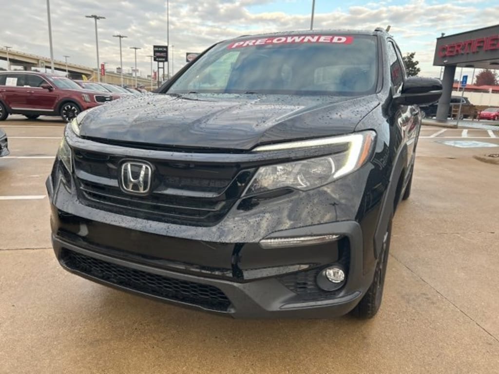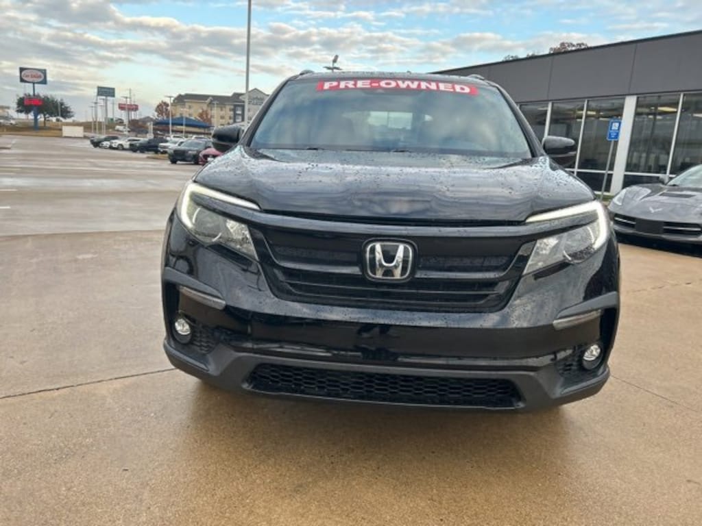 This 2022 Honda Pilot comes equipped with the following features AWD, 3rd row seats: split-bench, 4-Wheel Disc Brakes, 4.33 Axle Ratio, 7 Speakers, A/V remote: CabinControl, ABS brakes, Air Conditioning, Alloy wheels, AM/FM radio: SiriusXM, Apple CarPlay/Android Auto, Auto High-beam Headlights, Auto-dimming Rear-View mirror, Automatic temperature control, Blind Spot Information (BSI) System warning, Brake assist, Bumpers: body-color, Delay-off headlights, Driver door bin, Driver vanity mirror, Dual front impact airbags, Dual front side impact airbags, Electronic Stability Control, Emergency communication system: HondaLink Assist, Exterior Parking Camera Rear, Forward collision: Collision Mitigation Braking System (CMBS) + FCW mitigation, Four wheel independent suspension, Front anti-roll bar, Front Bucket Seats, Front Center Armrest, Front dual zone A/C, Front fog lights, Front reading lights, Fully automatic headlights, Garage door transmitter: HomeLink, Heated door mirrors, Heated Front Bucket Seats, Heated front seats, Illuminated entry, Lane departure: Lane Keeping Assist System (LKAS) active, Leather Seat Trim, Low tire pressure warning, Memory seat, Navigation system: Honda Satellite-Linked Navigation System, Occupant sensing airbag, Outside temperature display, Overhead airbag, Overhead console, Panic alarm, Passenger door bin, Passenger vanity mirror, Power door mirrors, Power driver seat, Power Liftgate, Power moonroof, Power passenger seat, Power steering, Power windows, Radio data system, Radio: 215-Watt Audio System, Rear air conditioning, Rear anti-roll bar, Rear reading lights, Rear seat center armrest, Rear window defroster, Rear window wiper, Reclining 3rd row seat, Remote keyless entry, Roof rack: rails only, Security system, Speed control, Speed-sensing steering, Speed-Sensitive Wipers, Split folding rear seat, Spoiler, Steering wheel mounted audio controls, Tachometer, Telescoping steering wheel, Tilt steering wheel, Traction control, Trip computer, Turn signal indicator mirrors, Variably intermittent wipers, and Wheels: 18 Exclusive Gloss Black Alloy. AWD. CARFAX One-Owner. 2022 Honda Pilot TrailSport AWD 3.5L V6 24V SOHC i-VTEC