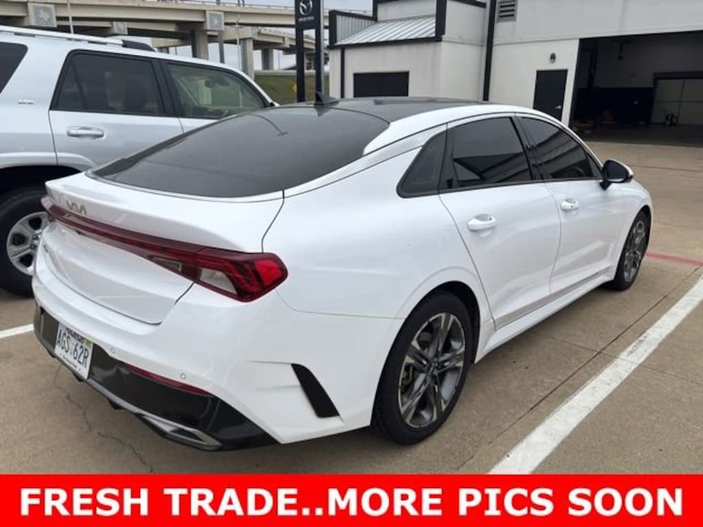 This 2022 Kia K5 comes equipped with the following features EX Premium Package (10-Way Power Passenger Seat, Active Sound Design, Auto Up/Down Rear Windows, Bose Premium Audio, Forward Collision Avoidance-Assist - Cyclist, Forward Collision Avoidance-Assist - Junction Turn, Heated Steering Wheel, LED Rear Combi Lamps, Memory Driver's Seat & Outside Mirrors, Navigation-Based Smart Cruise Control - Curve, Outside Mirrors w/LED Turn Signals, Parking Collision Avoidance-Assist - Reverse, Parking Distance Warning - Forward, Power Child Lock, Power Folding Outside Mirrors, Safe Exit Assist w/Lock, Smart Cruise Control w/Stop & Go, and Surround View Monitor), 4-Wheel Disc Brakes, 6 Speakers, ABS brakes, Air Conditioning, Alloy wheels, AM/FM radio: SiriusXM, Apple CarPlay & Android Auto, Auto High-beam Headlights, Automatic temperature control, Brake assist, Bumpers: body-color, Carpeted Floor Mats, Delay-off headlights, Driver door bin, Driver vanity mirror, Dual front impact airbags, Dual front side impact airbags, Electronic Stability Control, Emergency communication system, Four wheel independent suspension, Front anti-roll bar, Front Bucket Seats, Front Center Armrest, Front dual zone A/C, Front reading lights, Fully automatic headlights, Heated & Ventilated Front Bucket Seats, Heated door mirrors, Heated front seats, Illuminated entry, Knee airbag, Leatherette Seat Trim, Low tire pressure warning, Navigation System, Occupant sensing airbag, Outside temperature display, Overhead airbag, Overhead console, Panic alarm, Passenger door bin, Passenger vanity mirror, Power door mirrors, Power driver seat, Power moonroof, Power steering, Power windows, Radio data system, Radio: AM/FM/MP3 Audio System, Rear anti-roll bar, Rear reading lights, Rear seat center armrest, Rear side impact airbag, Rear window defroster, Remote keyless entry, Security system, Smart Key w/ Push Button and Remote Start, Speed control, Speed-sensing steering, Split folding rear seat, Steering wheel mounted audio controls, Tachometer, Telescoping steering wheel, Tilt steering wheel, Traction control, Trip computer, Variably intermittent wipers, Ventilated front seats, and Wheels: 7.5J x 18 Gray Machined Finish Alloy. CARFAX One-Owner. 2022 Kia K5 EX FWD I4