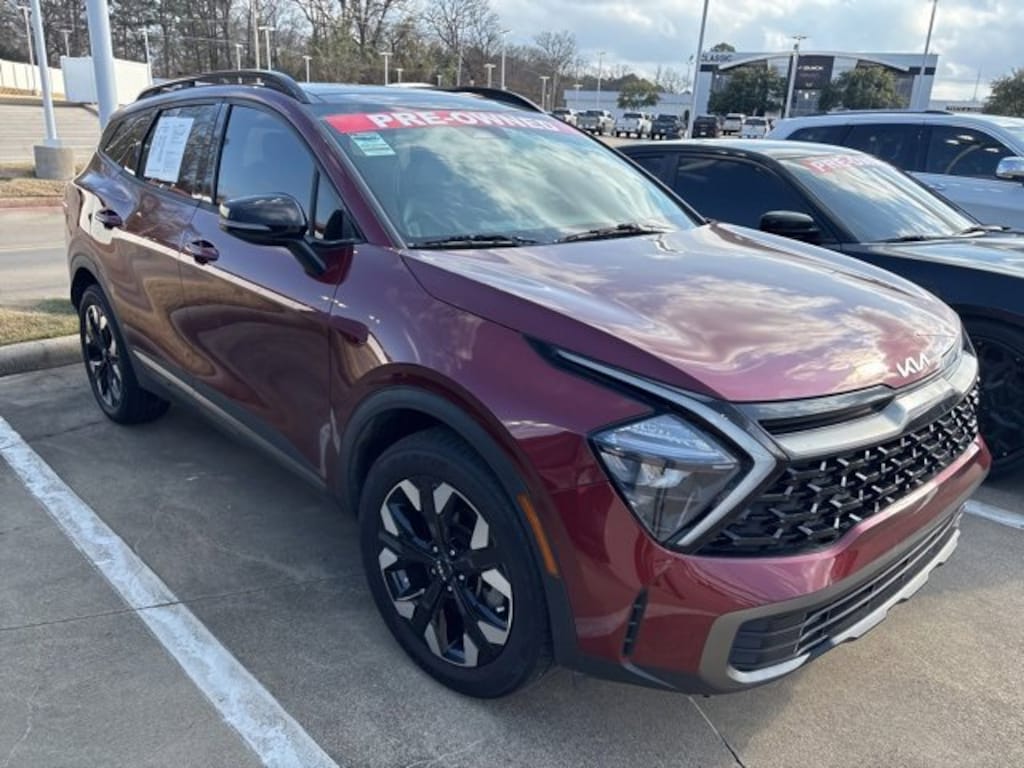 This 2023 Kia Sportage comes equipped with the following features X-Line Premium Package (LED Interior Lighting, Panoramic Sunroof, and Smart Power Liftgate), AWD, 4-Wheel Disc Brakes, 6 Speakers, ABS brakes, Air Conditioning, Alloy wheels, AM/FM radio: SiriusXM, Apple CarPlay & Android Auto, Auto High-beam Headlights, Automatic temperature control, Axle Ratio: 3.648, Brake assist, Bumpers: body-color, Carpet Floor Mats X-Line, Compass, Delay-off headlights, Driver door bin, Driver vanity mirror, Dual front impact airbags, Dual front side impact airbags, Electronic Stability Control, Emergency communication system, Four wheel independent suspension, Front anti-roll bar, Front Bucket Seats, Front Center Armrest, Front dual zone A/C, Fully automatic headlights, harman/kardon® Speakers, Heated door mirrors, Heated Front Bucket Seats, Heated front seats, Illuminated entry, Leather Shift Knob, Leather steering wheel, Low tire pressure warning, Navigation System, Occupant sensing airbag, Outside temperature display, Overhead airbag, Overhead console, Panic alarm, Passenger door bin, Passenger vanity mirror, Power door mirrors, Power driver seat, Power steering, Power windows, Premium Leatherette Seat Trim, Radio: AM/FM/HD Audio System, Rain sensing wipers, Rear anti-roll bar, Rear seat center armrest, Rear window defroster, Rear window wiper, Remote keyless entry, Security system, Speed control, Speed-sensing steering, Split folding rear seat, Spoiler, Steering wheel mounted audio controls, Tachometer, Telescoping steering wheel, Tilt steering wheel, Traction control, Trip computer, Turn signal indicator mirrors, Variably intermittent wipers, and Wheels: 19 Gloss Black Alloy. AWD. Clean CARFAX. CARFAX One-Owner. 2023 Kia Sportage X-Line AWD I4